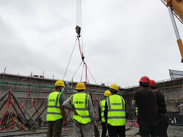 6.为确保.黄骅加油站球形网架安装顺利,应有详细的黄骅施工组织设计。网架安装必须保证结构的稳定性和不产生的附加变形。
