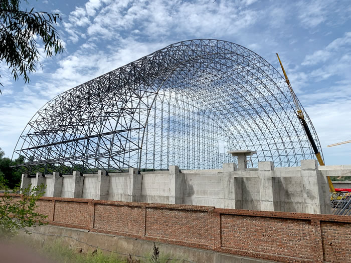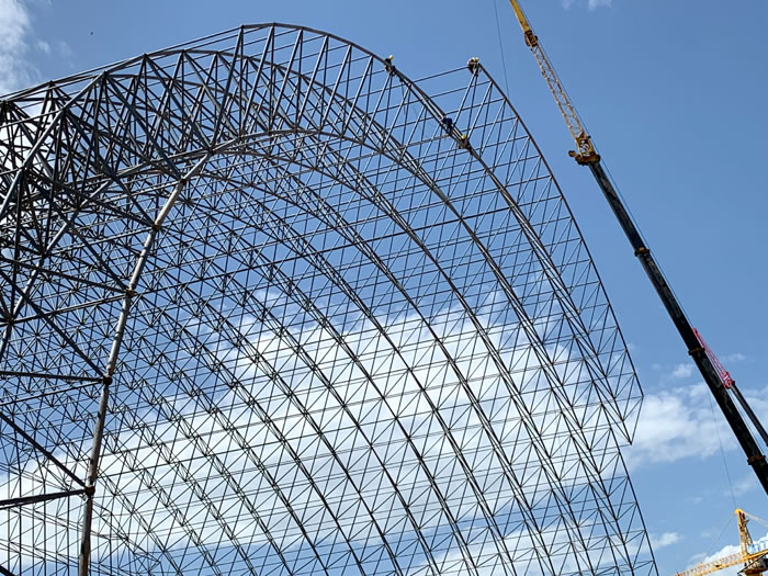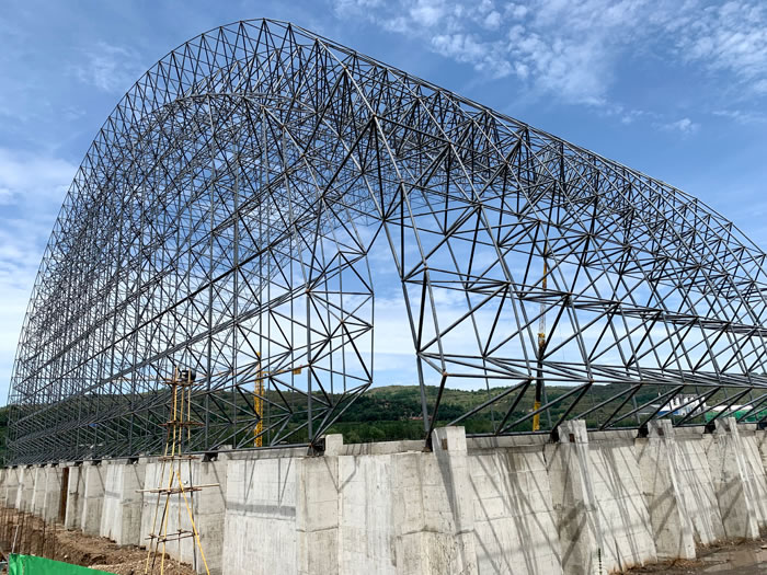 (2)网架加工前应对现场尺寸进行复测,确认无误后方可进行加工、安装;网架制作、运输、安装应遵守《空间网格结构技术规程》JGJ7-2010、《钢网架黄骅螺栓球节点》JG/T 10-2009、《钢网架黄骅螺栓球节点用高强度螺栓》 GB/T 16939-2016、《黄骅钢结构黄骅工程黄骅施工规范》 GB50755-2012、《黄骅钢结构黄骅工程施工质量验收标准》 GB50205-2020。